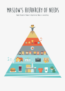 Dall’altra parte, nel pensiero umanista le necessità umane sono fondamentali. In questo ambito incontriamo l’altro grande esponente del movimento, Abraham Maslow, creatore della celebre piramide dei bisogni fondamentali dell’essere umano, conosciuta come piramide di Maslow.